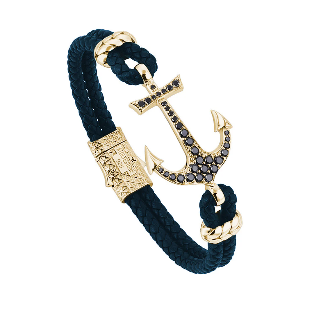 Anchor Leather Bracelet. All handmade with 925 Sterling silver and prime quality Italian Leather Nappa finished with handset zirconia gems. Ideal for nautical - maritime design lovers. Secure and easy to wear pusher clasps. Timeless anchor design is handcrafted for perfection. Great addition to your casual or smart casual outfits and ideal for daily wear. Available in a good variety of options. Try your style today.