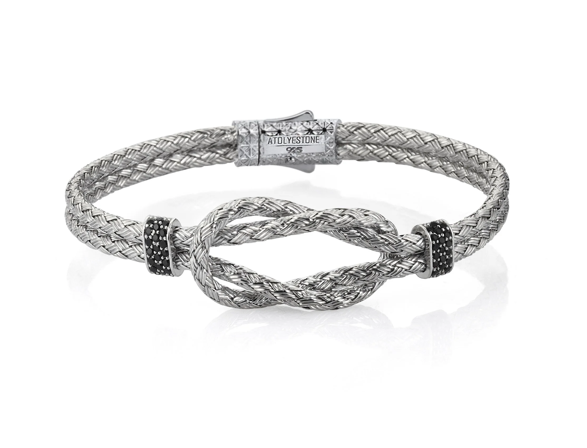 The famous artillery loop meets with unmatched craftsmanship. This unique design is meticulously braided with sterling silver and decorated with black stones. Perfect for casual and smart casual styles.
