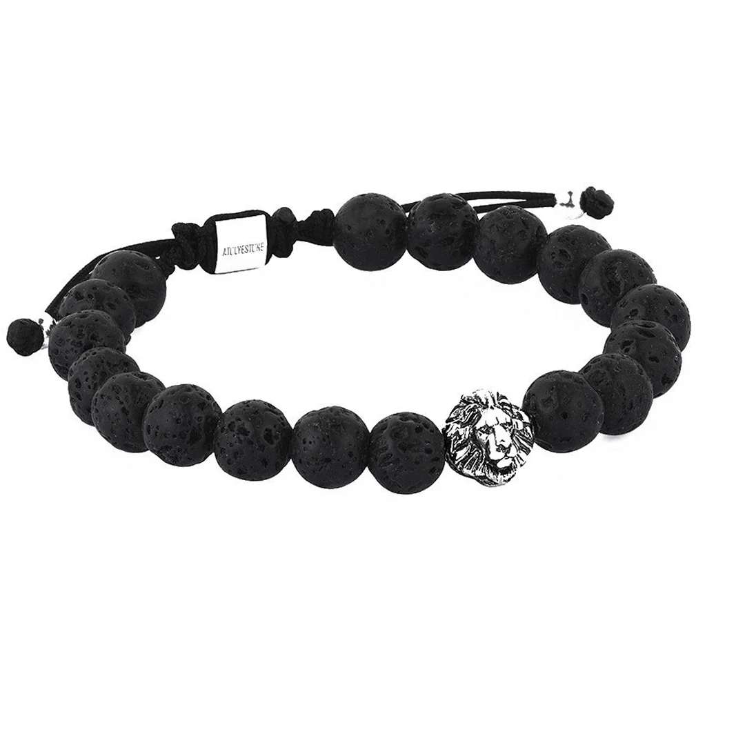 Leo Beaded Macrame Bracelet has a bold and genuine design with its elegant black stones embellished with solid silver Lion head and Atolyestone's iconic signature.