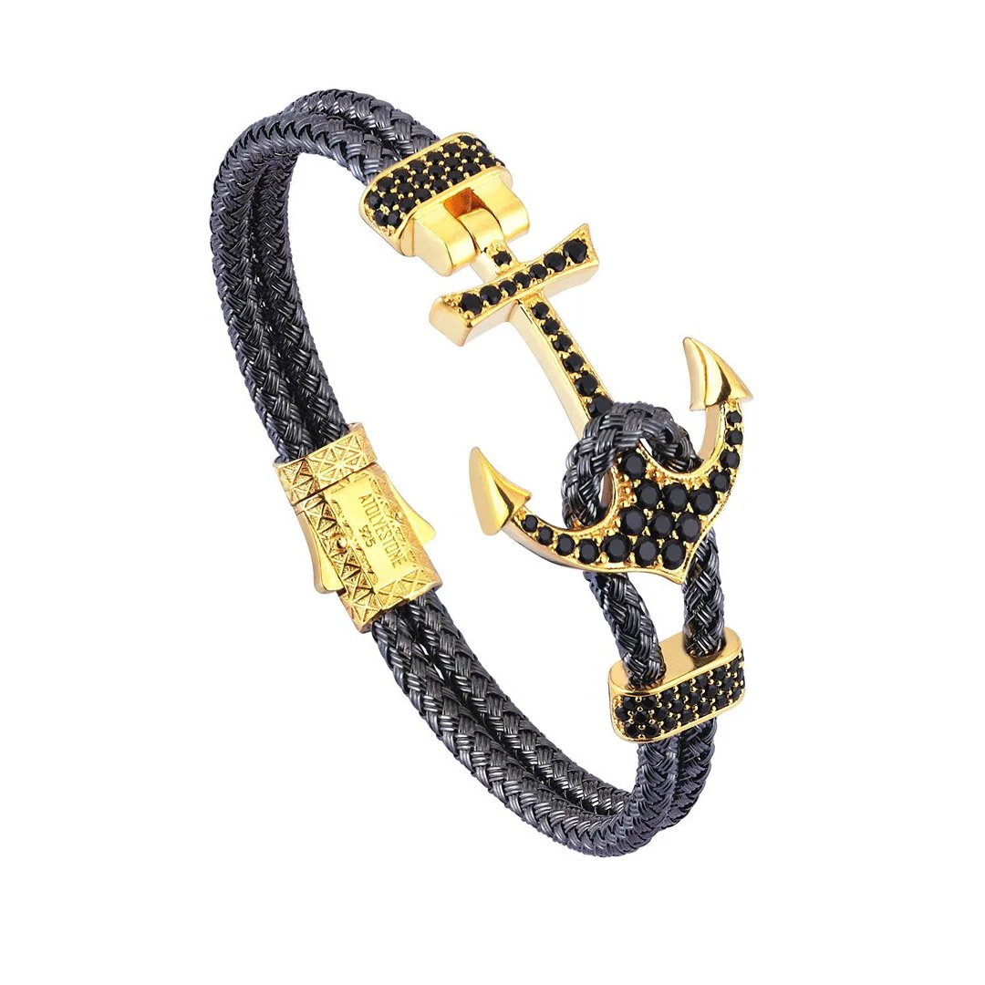 Solid Silver Anchor paved with Black Cubic Zirconia